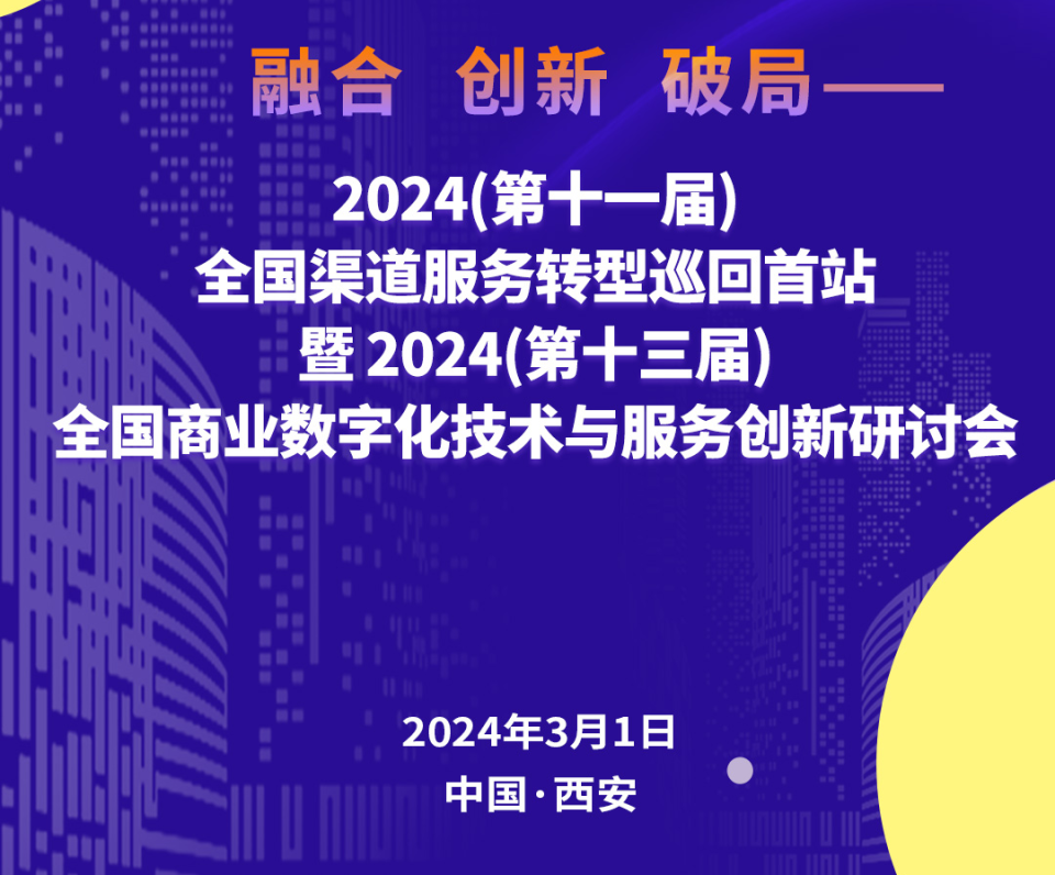 2024(第十三屆)全國商業(yè)數(shù)字化技術(shù)與服務(wù)創(chuàng)新研討會(huì)暨2024(第十一屆)全國渠道服務(wù)轉(zhuǎn)型巡回首站于3月1日在西安舉行。